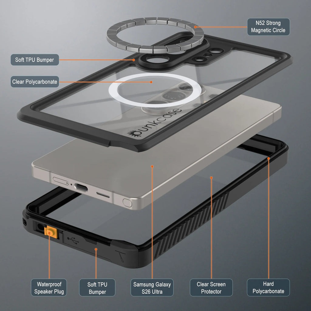- PunkCase S26 Ultra Case [Extreme Mag Series]: Ihr Punk-Kumpel, der Ihr S26 Ultra gegen Punk-Naturgewalten punkfest macht.