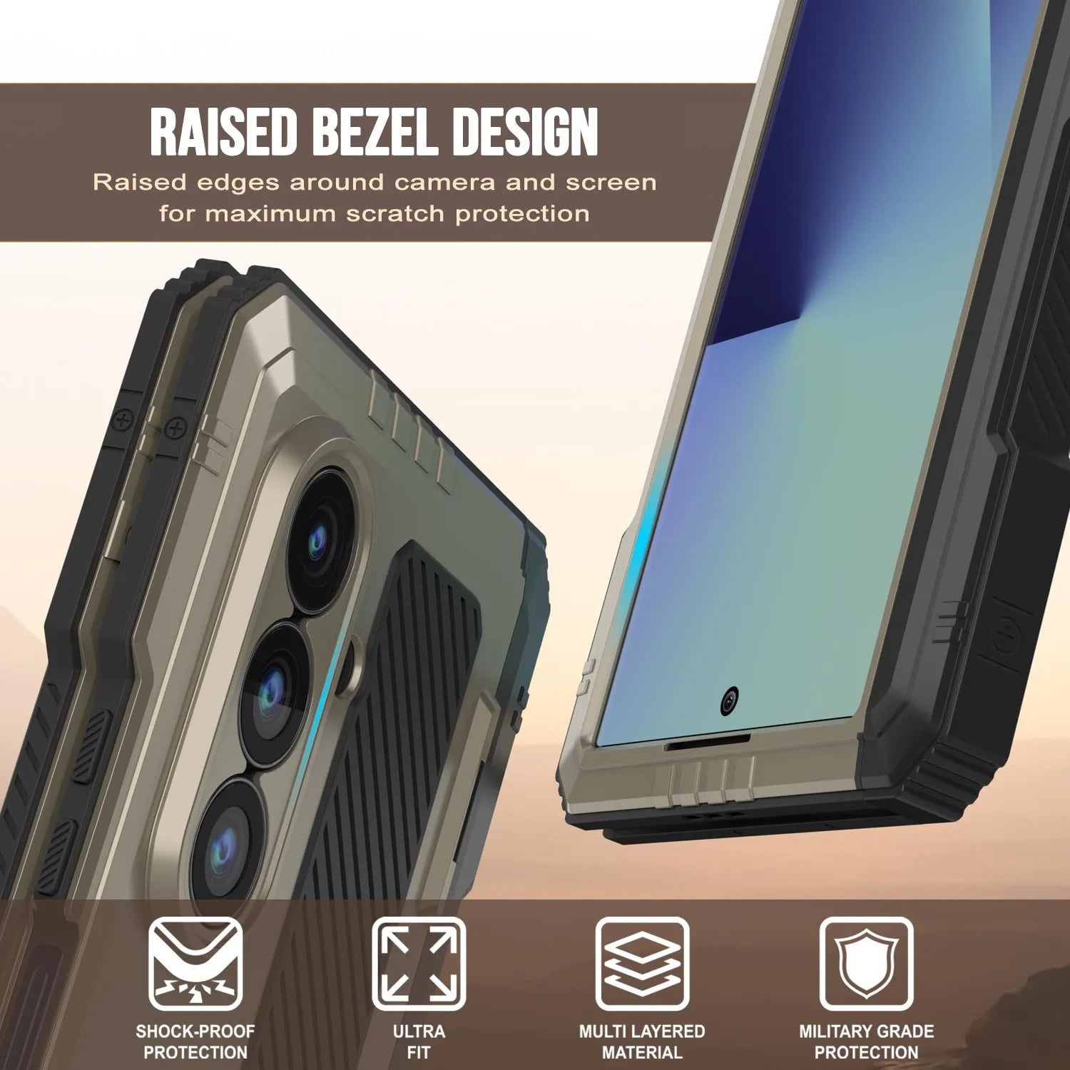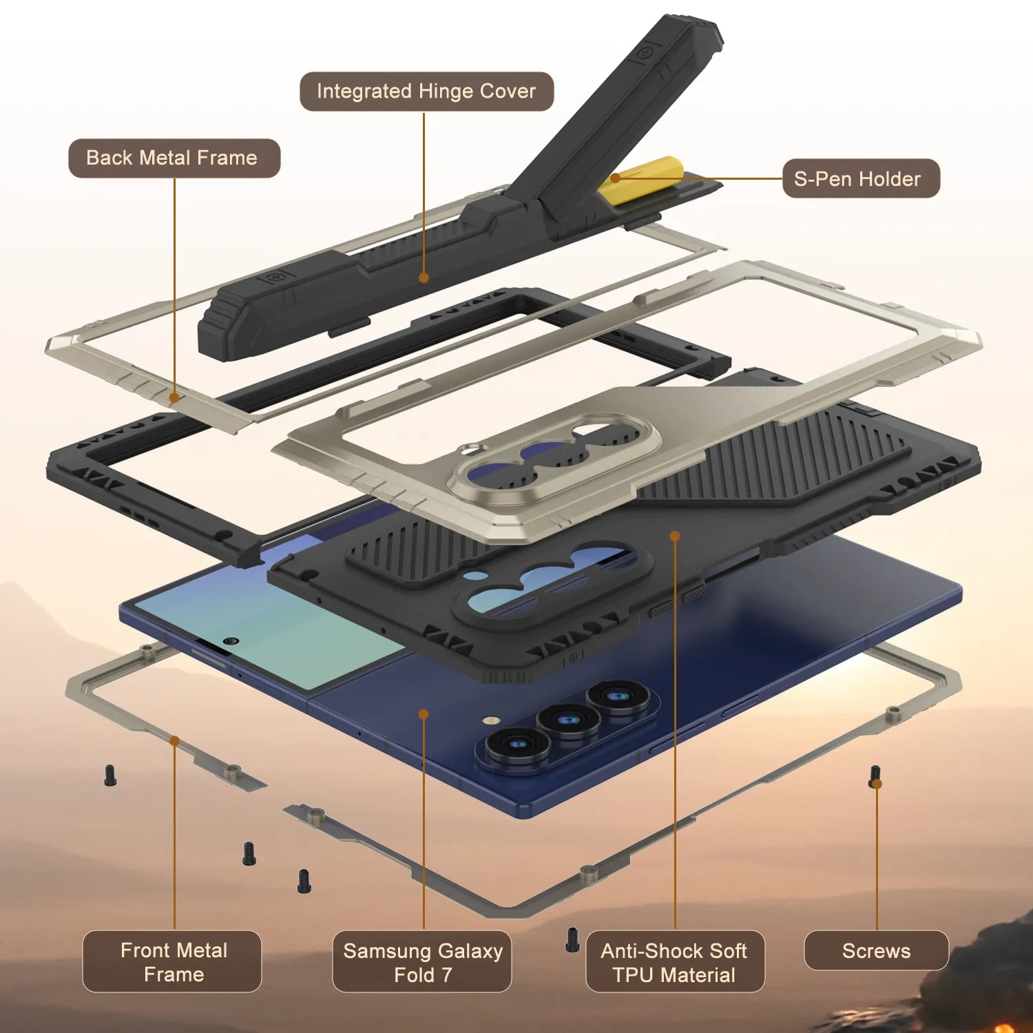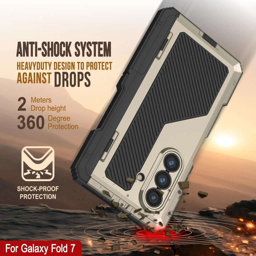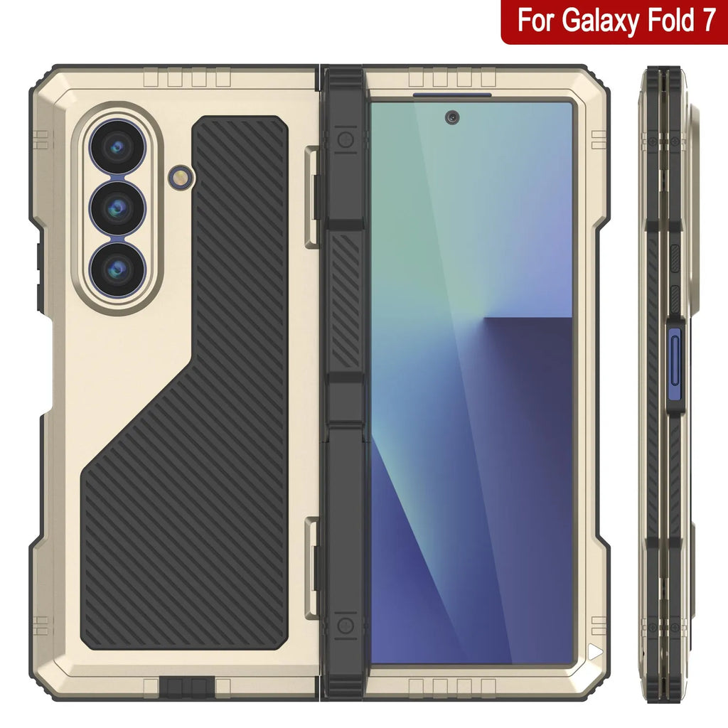 Galaxy Z Fold7 Metall Case, Heavy Duty Military Grade Rüstungsbedeckung Ganzkörper hart Gold