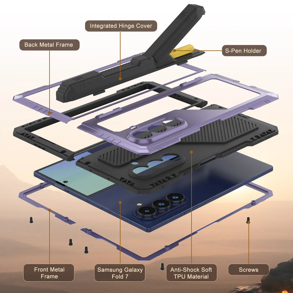 Galaxy Z Fold7 Metall Case, Heavy Duty Military Grade -Rüstungsbedeckung Ganzkörper hart lila