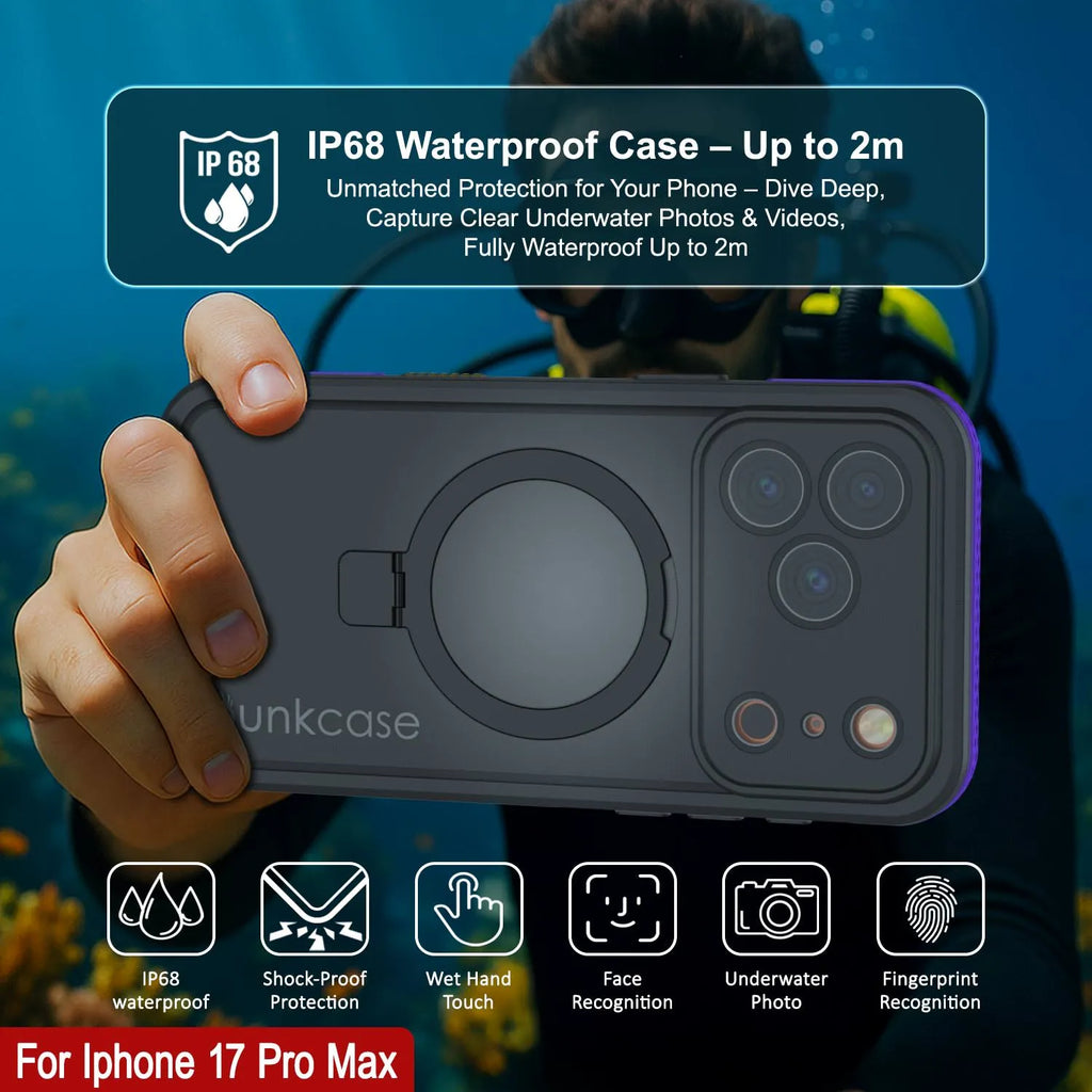PunkCase für iPhone 17 Pro Max wasserdichte Hülle [Kickstud 2.0-Serie] IP68-zertifizierte Schutzhülle mit Displayschutzfolie und Ständer