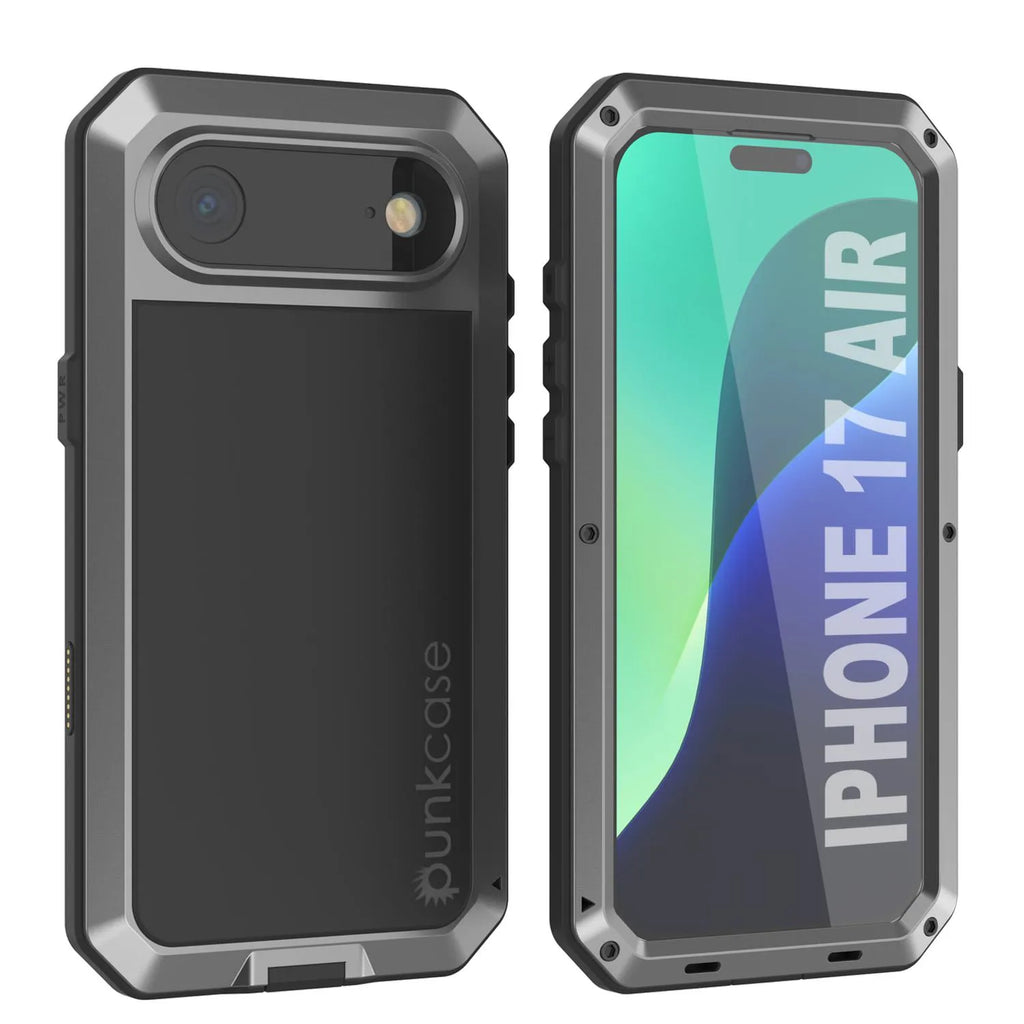 iPhone 17 Air Metal Case, Heavy Duty Military Grade -Rüstungsabdeckung [Stoßdämpfer] Ganzkörper hart [Silber]