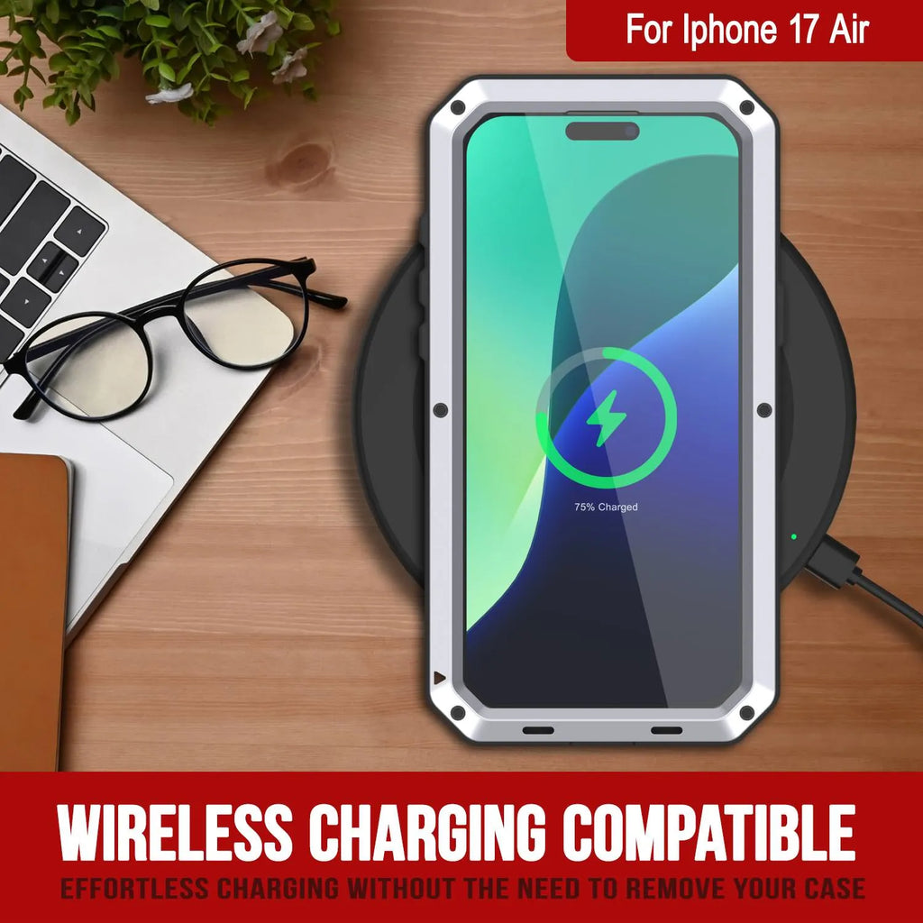 iPhone 17 Air Metal Case, Heavy Duty Military Grade -Rüstungsabdeckung Stoßdämpfer Ganzkörper hart weiß