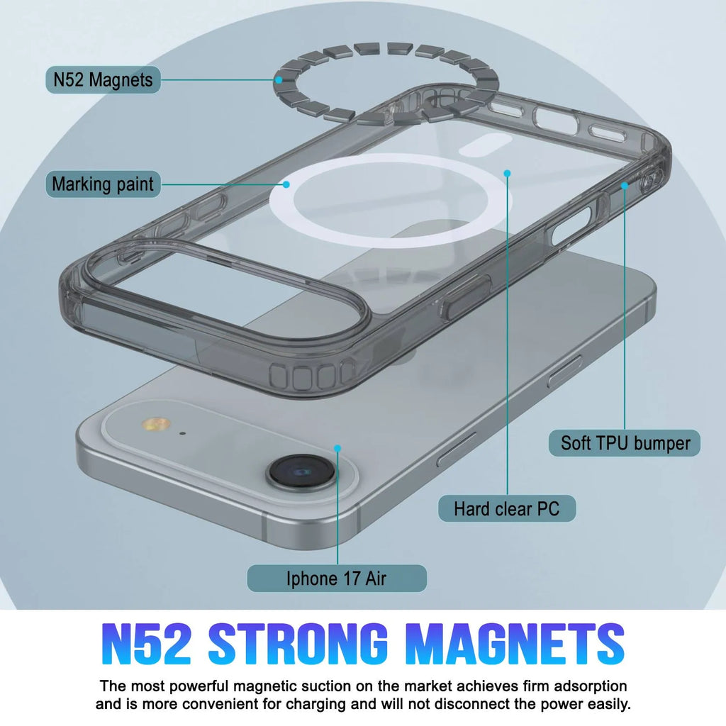- PunkCase iPhone 17 Luft Clearmag Hülle: transparente und schützende Rückdecke mit integriertem magnetischem Ladekreis