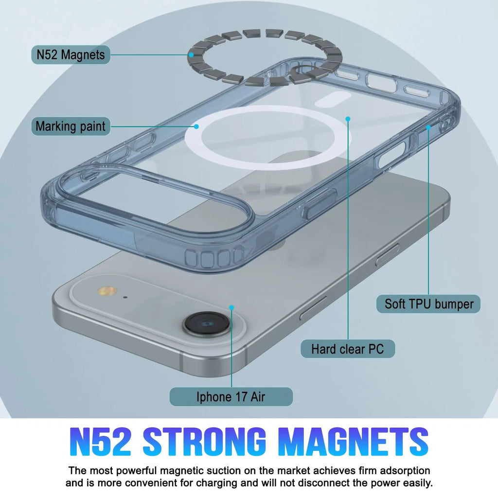 • PunkCase iPhone 17 Luft Clearmag Hülle: transparente und schützende Rückdecke mit integriertem magnetischem Ladekreis