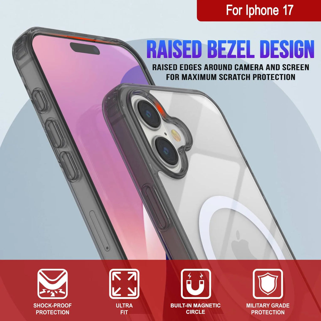 - PunkCase iPhone 17 Clearmag Hülle: transparente und schützende Rückdecke mit integriertem magnetischem Ladekreis