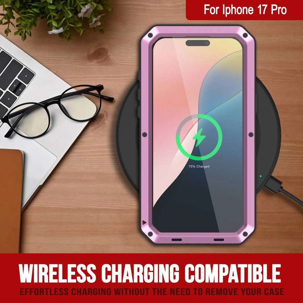 iPhone 17 Pro Metal Case, Heavy Duty Military Grade -Rüstungsabdeckung Schocksicher Ganzkörper hart Pink