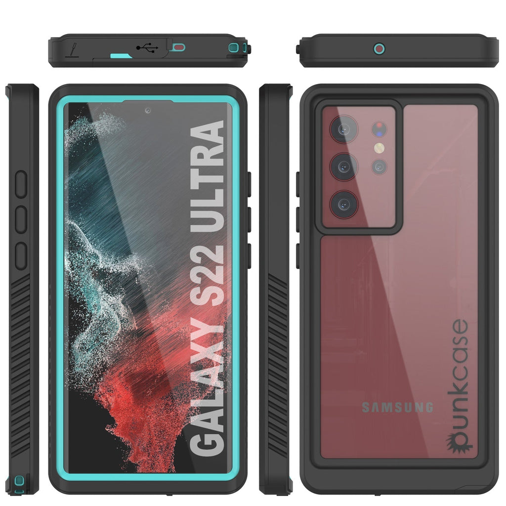 PunkCase Galaxy S22 Ultra wasserdichte Hülle [Extreme-Serie] [Slim Fit] [IP68-zertifiziert] [Stoßfest] [Schmutzdicht] [Schneefest] Armor Cover für Galaxy S22 Ultra 5G (6,8 Zoll) (2022) [Blaugrün]