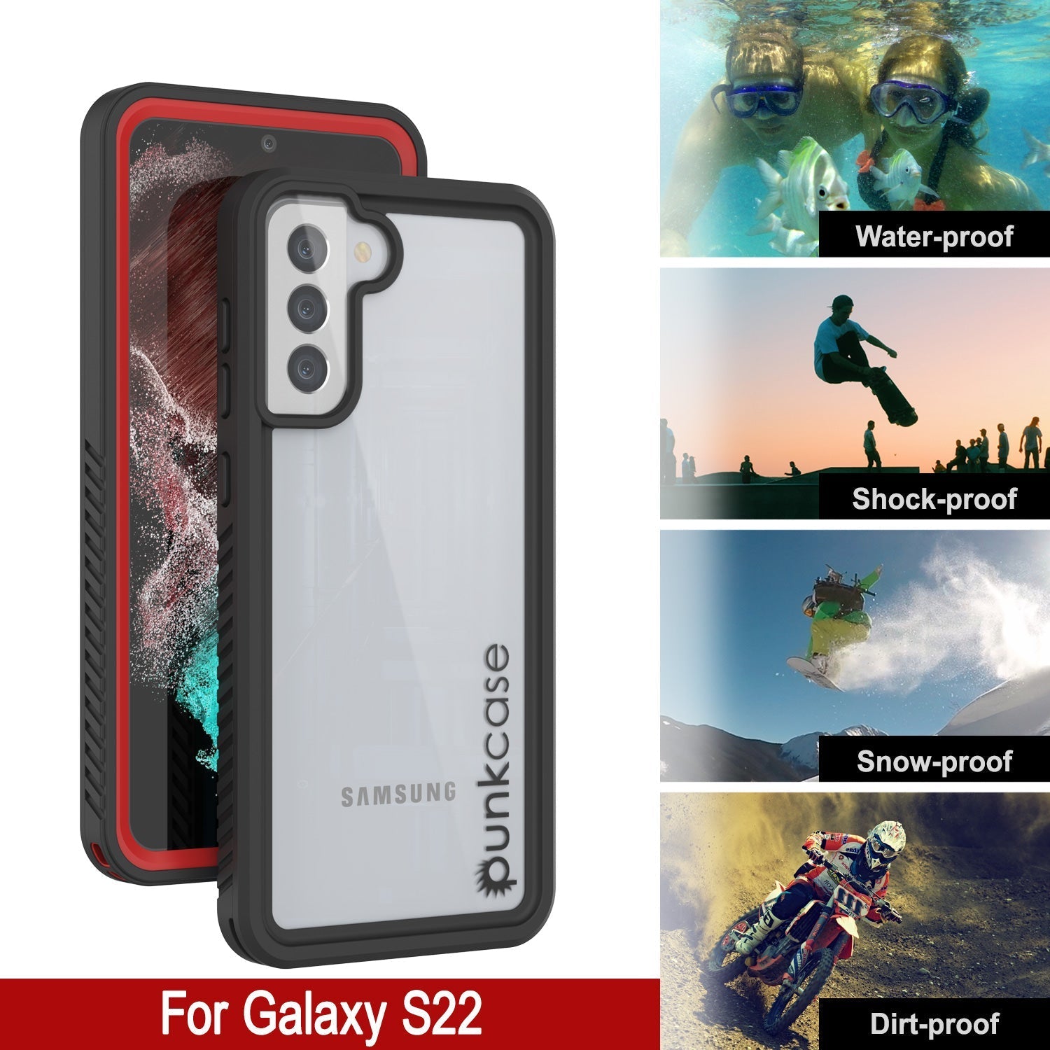 PunkCase Galaxy S22 Wasserdichte Hülle [Extreme Series] [Slim Fit] [IP68-zertifiziert] [Stoßfest] [Schmutzdicht] [Schneefest] Armor Cover für Galaxy S22 5G (6,06 Zoll) (2022) [Rot]