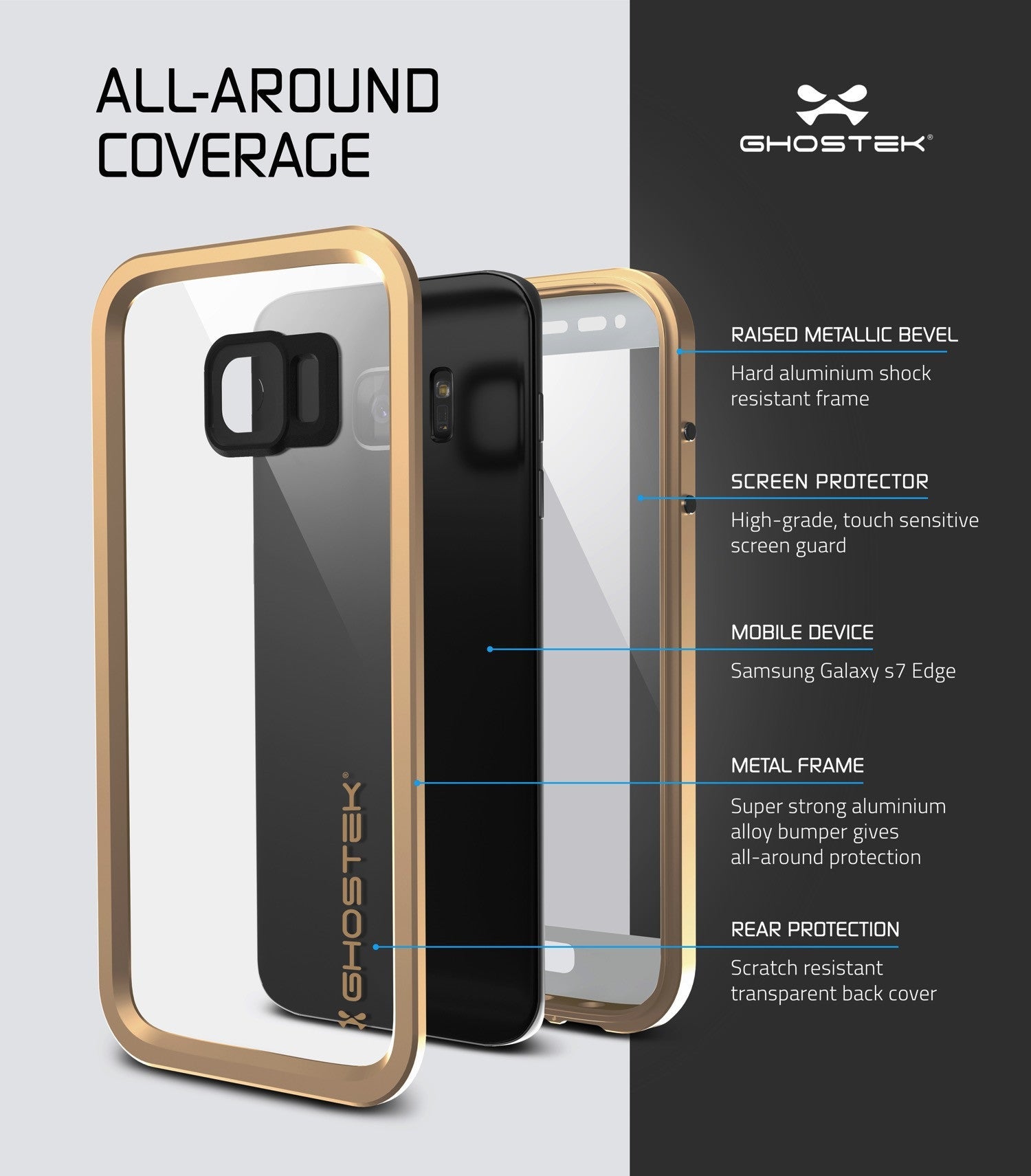 Galaxy S7 EDGE Wasserdichtes Gehäuse, Ghostek Atomic 2.0 Gold Shock/Dirt/Snow Proof | Lebenslange Garantie