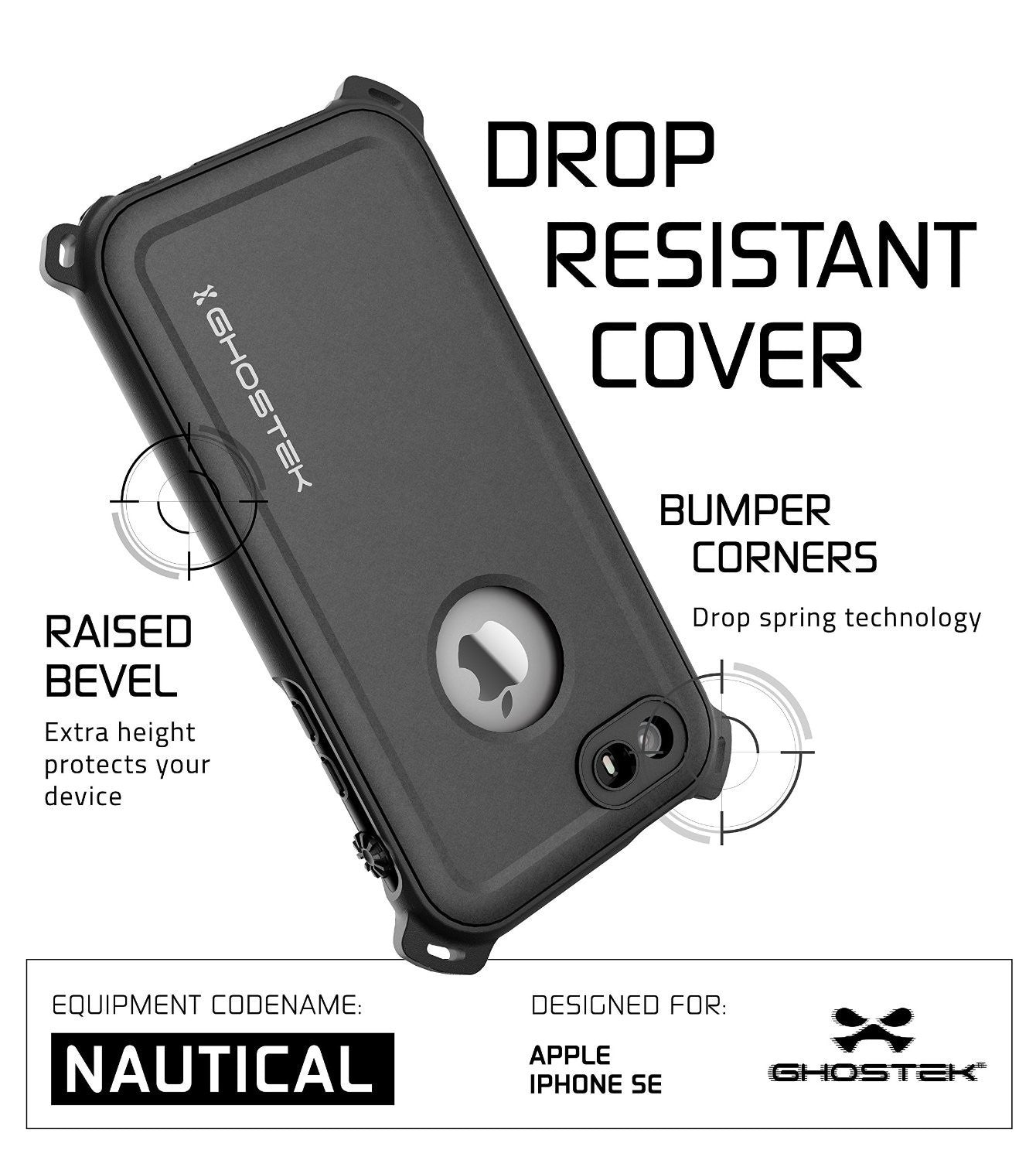 iPhone SE/5S/5 Wasserdichtes Gehäuse, Ghostek® Nautical Series für Apple iPhone SE/5S/5 Unterwasser Stöße Schmutzsicher Schneesicher Aluminiumrahmen Abenteuerbereit Ultra-Fit Schwimmen (Schwarz)
