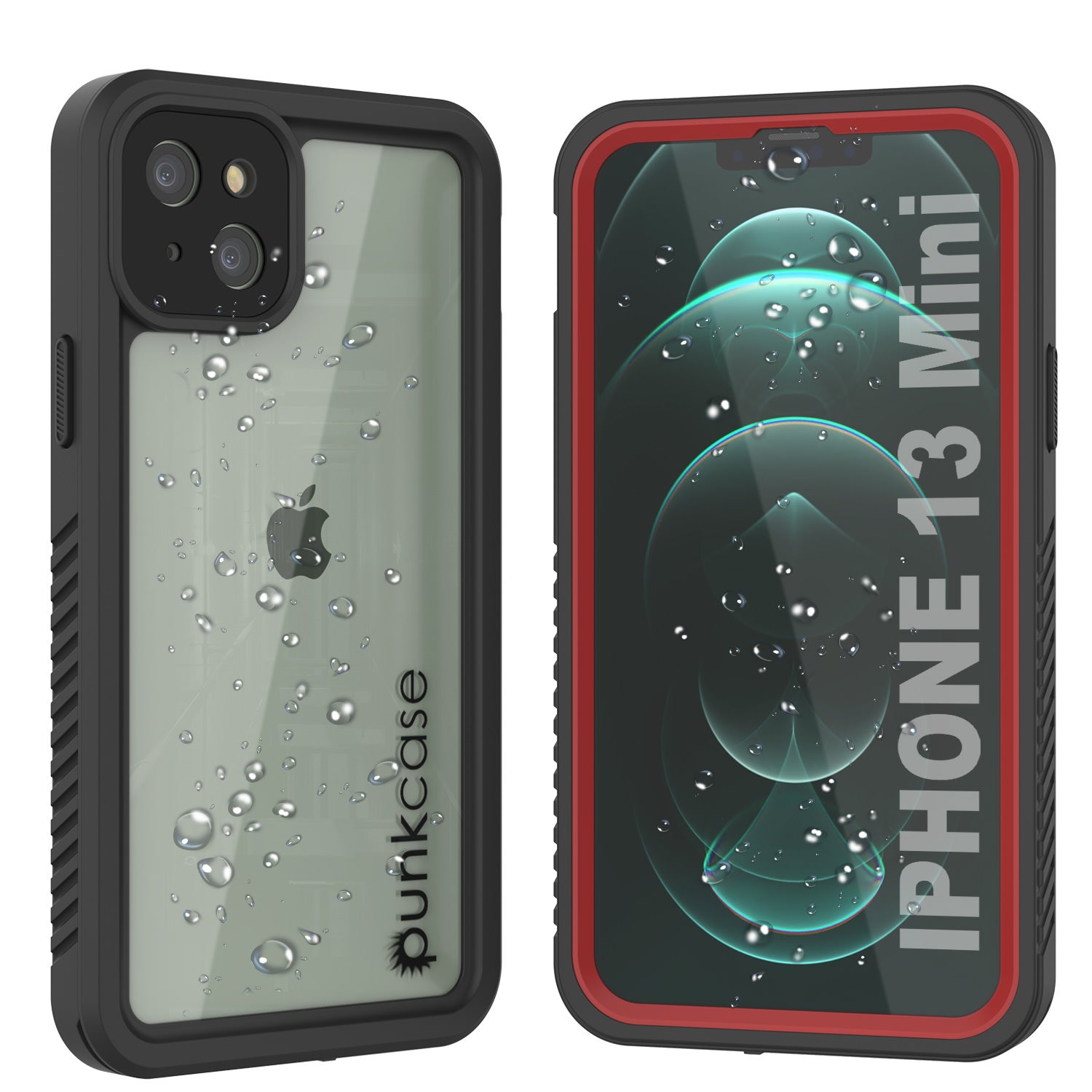 PunkCase iPhone 13 Mini Waterproof Case [Extreme Series] [Slim Fit] [IP68 Certified] [Shockproof] [Snowproof] [Dirtproof] Armor Cover W/ Built In Screen Protector für Apple iPhone 13 Mini [Rot]